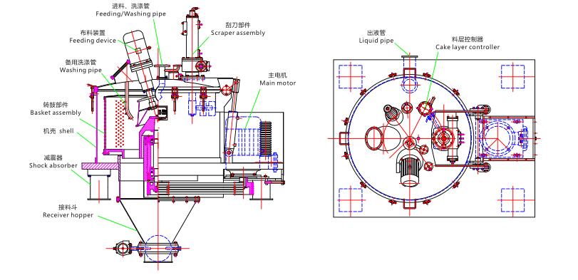 12、安全保護(hu):轉速檢測,過(guo)振動保護,開(kai)蓋保護,電機(ji)過載過熱保(bǎo)護🌂。制刀旋轉(zhuan),升降機械電(diàn)氣雙重控制(zhì),刮刀與轉鼓(gu)的聯動鎖定(ding)。
